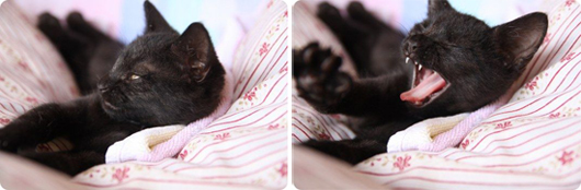 I have decided to name her Bagheera, since I find it to be quite a suitable name for a black kitty cat. The thing is, she looked like the ugly duckling - shaggy fur, crazy eyes, chaotic movements and the sudden jumps and runs ...
