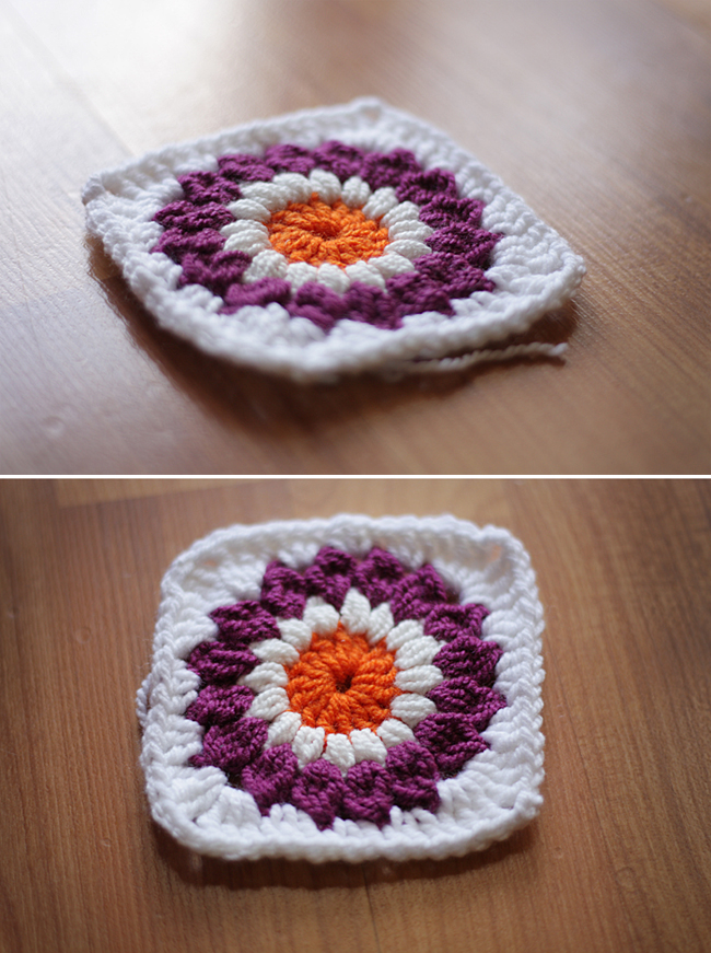 Ever since I learned how to crochet last Christmas, I knew I had to make a granny square project. I particularly liked the sunburst pattern - it is so flowerish and easy to make!