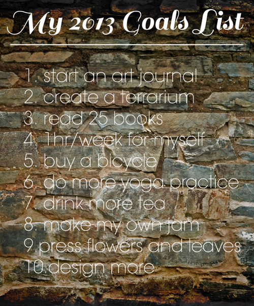 Also, since I love making lists and goals {and fulfilling them!), I have made my 2013 to do list.